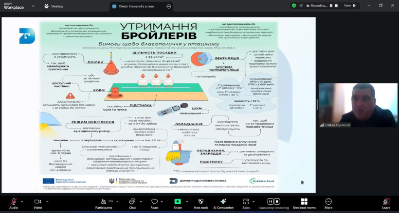Більше 360 учасників з усієї України долучилися до онлайн-семінару «Впровадження загальних вимог до благополуччя сільськогосподарської птиці під час її утримання», який відбувся 11 березня. Подія стала масштабним майданчиком для професійного діалогу між державою, бізнесом та міжнародними експертами щодо практичного впровадження нових стандартів утримання птиці.