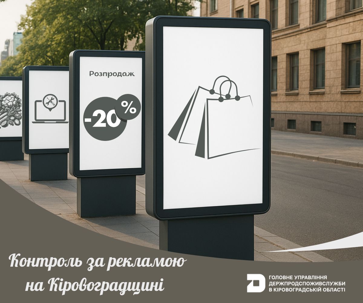 Звертаємо увагу споживачів: у разі виявлення порушень у сфері реклами звертайтеся до Головного управління Держпродспоживслужби в Кіровоградській області. Посадові особи розглядають звернення споживачів щодо порушення вимог Закону України «Про рекламу» та формують справи відносно суб’єктів: рекламодавців, розповсюджувачів та виробників реклами.
