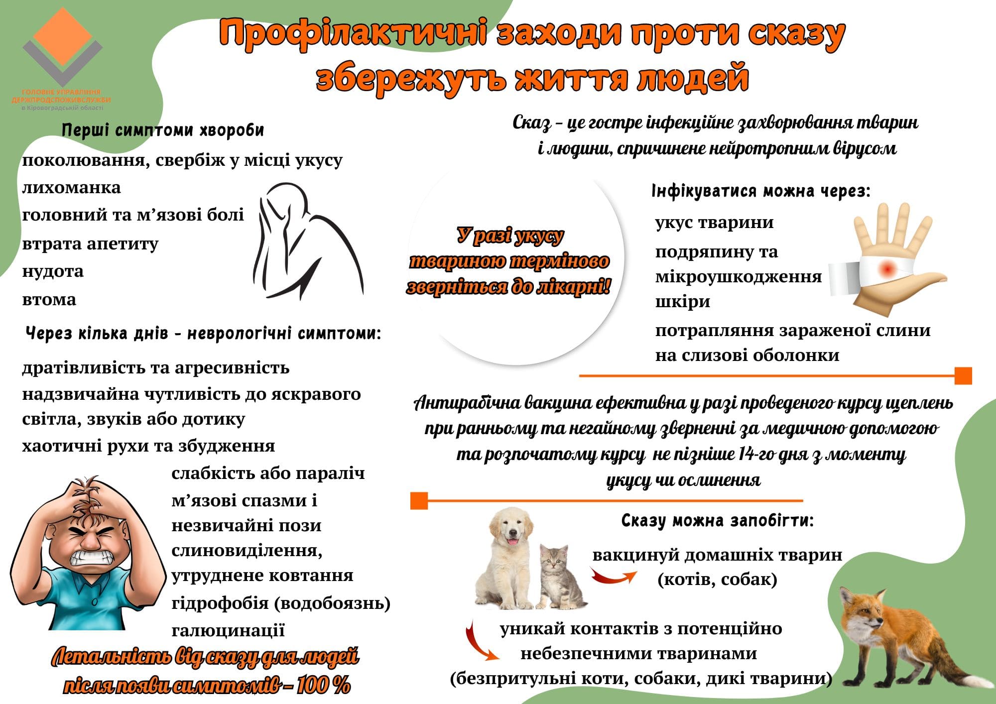 Профілактичні заходи проти сказу збережуть життя людей та тварин