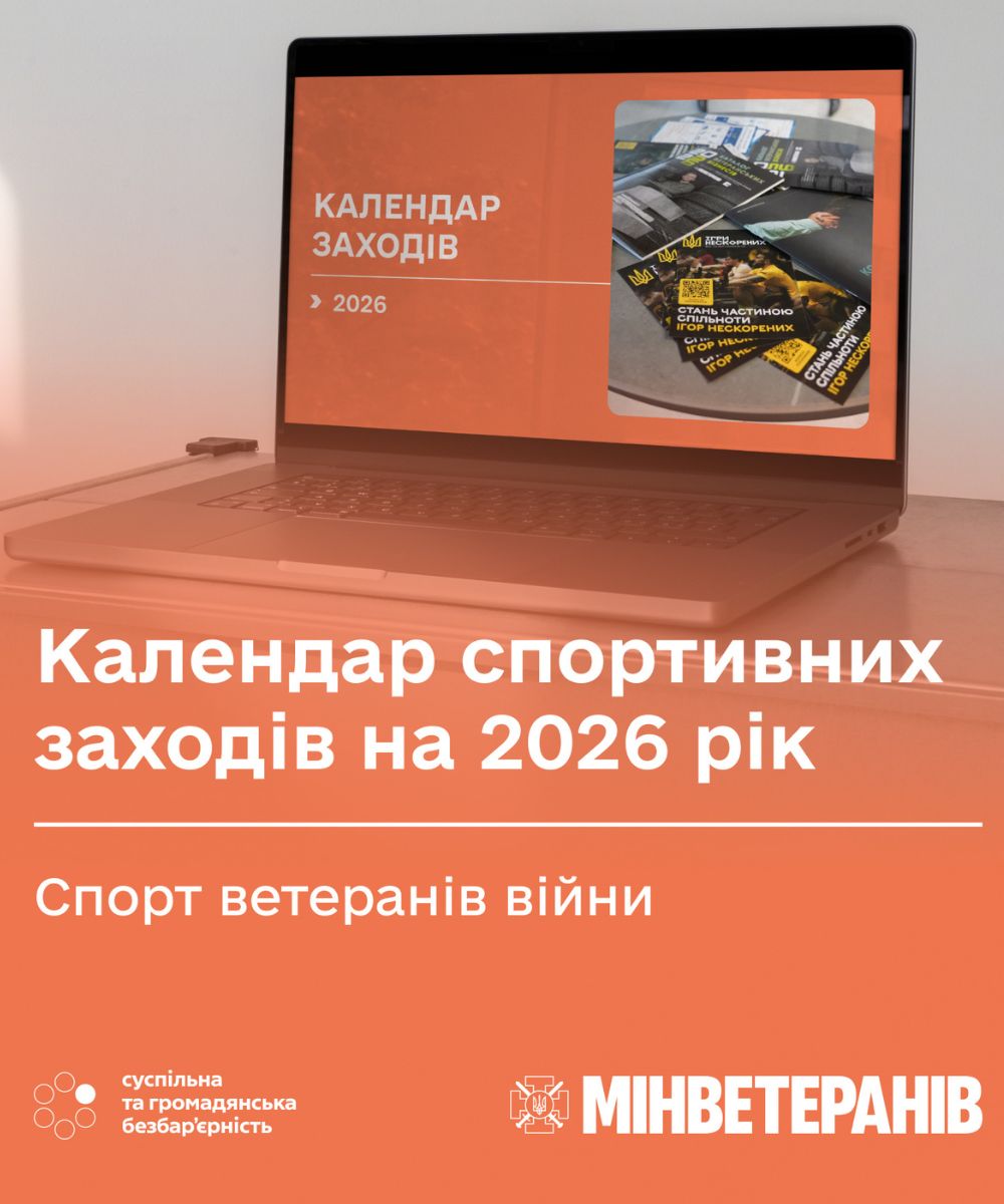 З метою підтримки фізичного та психологічного здоров’я, соціальної адаптації та інтеграції ветеранів війни та їхніх родин в активне громадське життя Міністерством у справах ветеранів України розроблено та затверджено Єдиний календарний план спортивних змагань та заходів зі спорту ветеранів війни на 2026 рік.